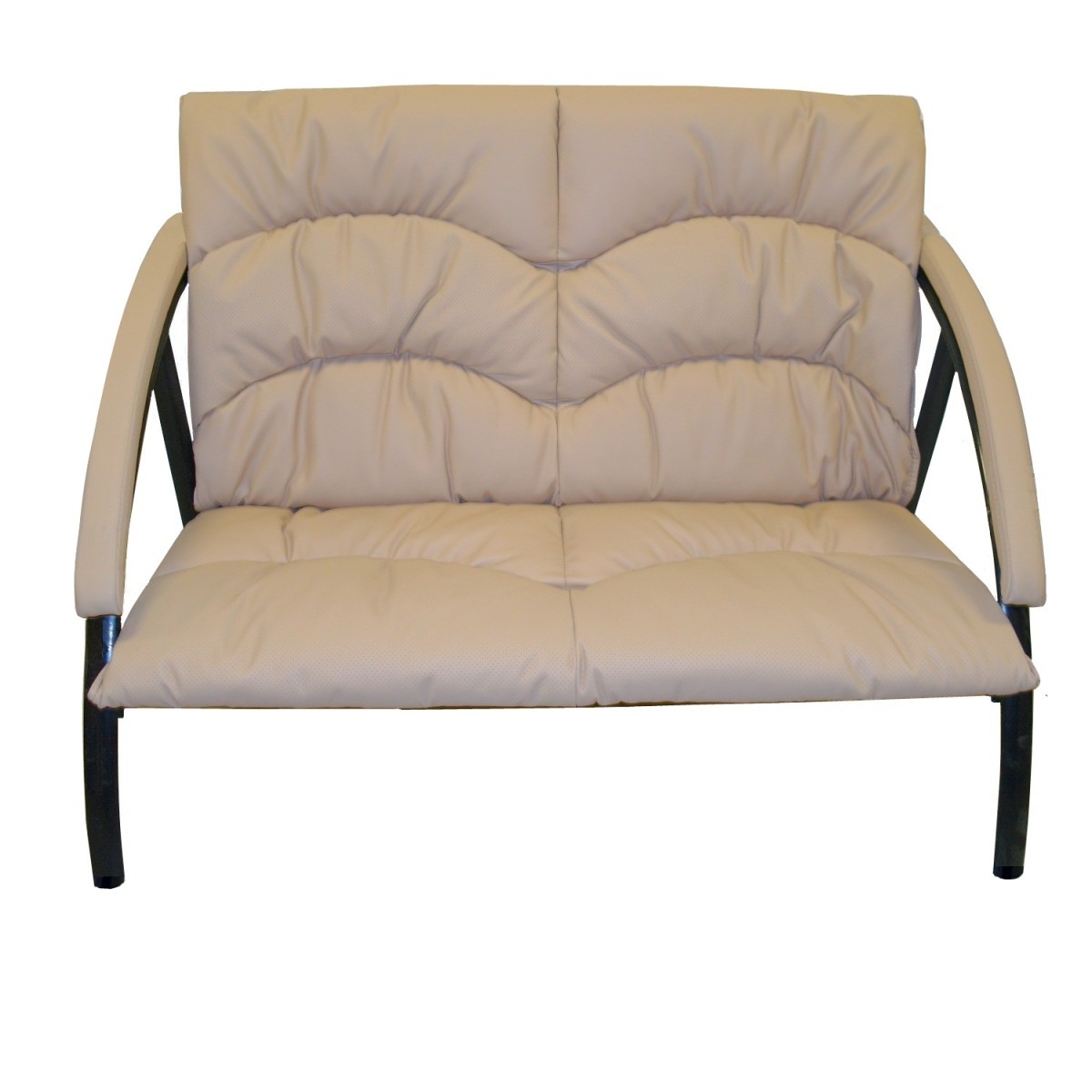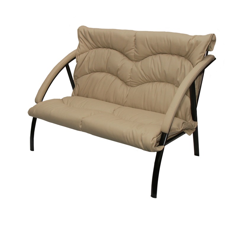 Каркас дивана металлический, материал обивки кожзам. Мягкие сиденье и спинка. Подлокотники металлические, с мягкими накладками. Диван не раскладывается.