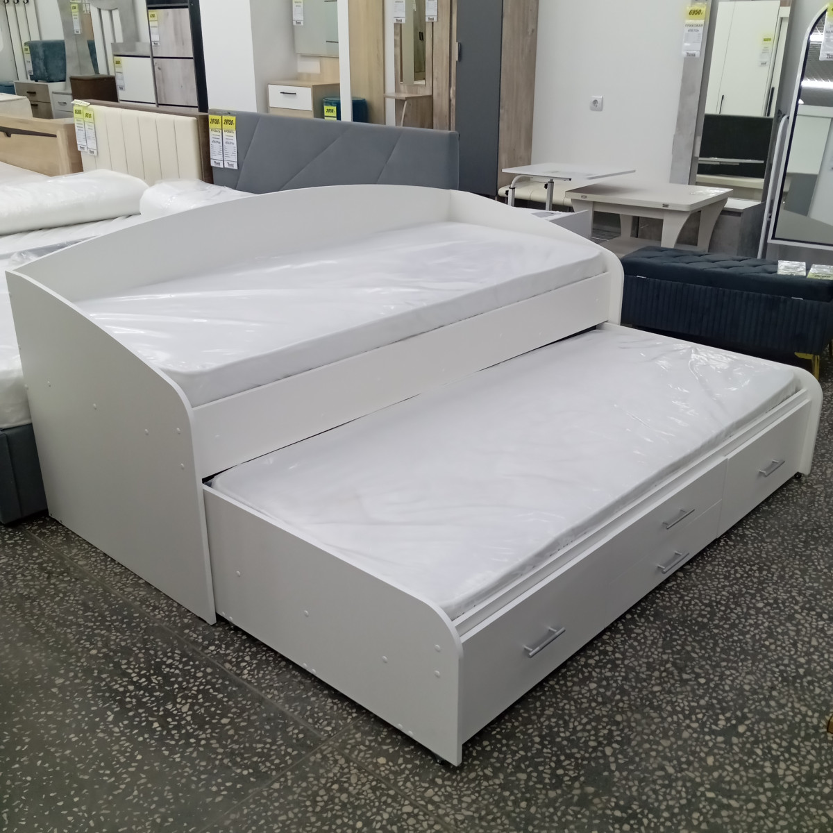Два выдвижных ящика удобно использовать для хранения постельных принадлежностей.