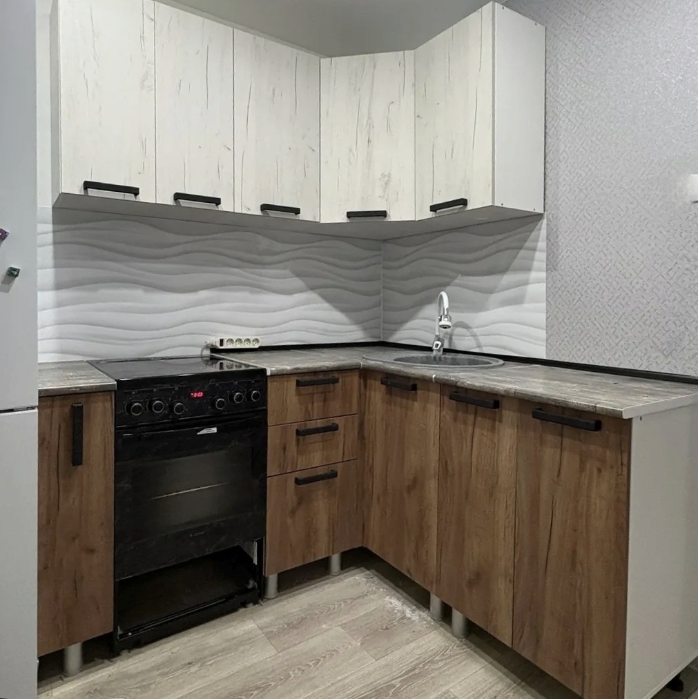Каталог Кухонная мебель Кухни Кухня "Диор" Фото Купить Кухня "Диор" Кухонный гарнитур "Диор""Под заказ"Размер:..............160*120 смФасады: дуб крафт табачный/крафт белыйКорпус:.....................белыйСтолешница:...........олдвуд —