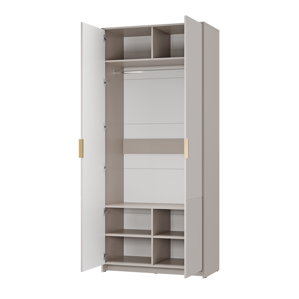 Шкаф коллекции «Пандора» - это универсальное решение для спальни, прихожей и гостиной. Трендовые пастельные оттенки «кашемир» и «айриш» создадут гармоничную и спокойную атмосферу. Верхняя часть фасадов из МДФ - гладкая и матовая, а нижняя декорирована изящной вертикальной фрезеровкой. Эта особенность создает интересный визуальный контраст и структурирует пространство.