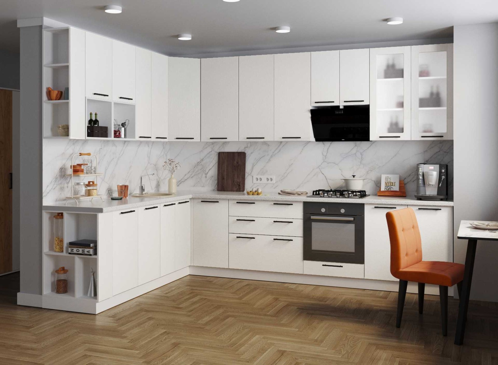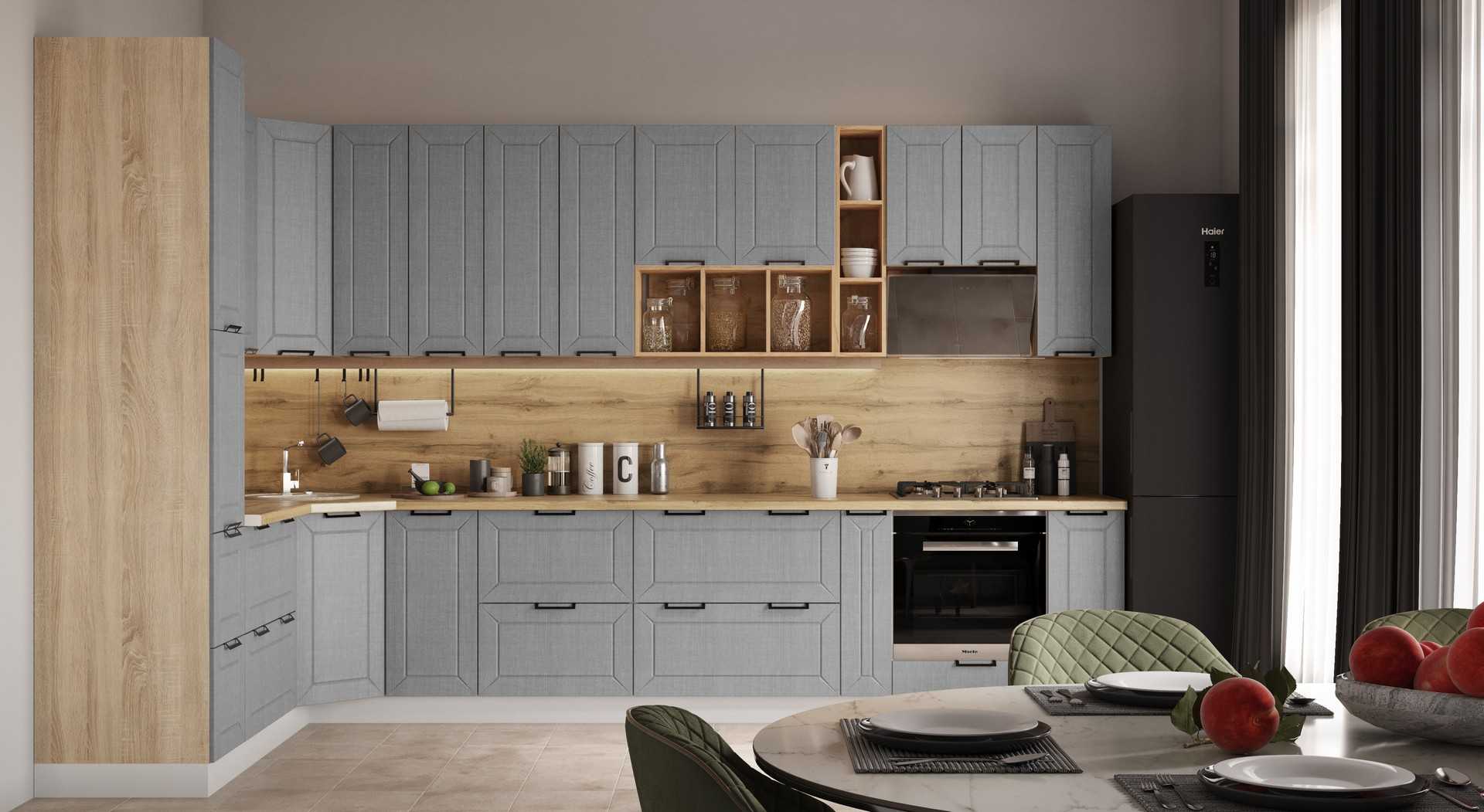 Кухня проектируется под конкретный заказ, учитывая планировку помещения, расположение окон и коммуникаций, а также по желанию покупателя по цвету, материалам и фурнитуре.