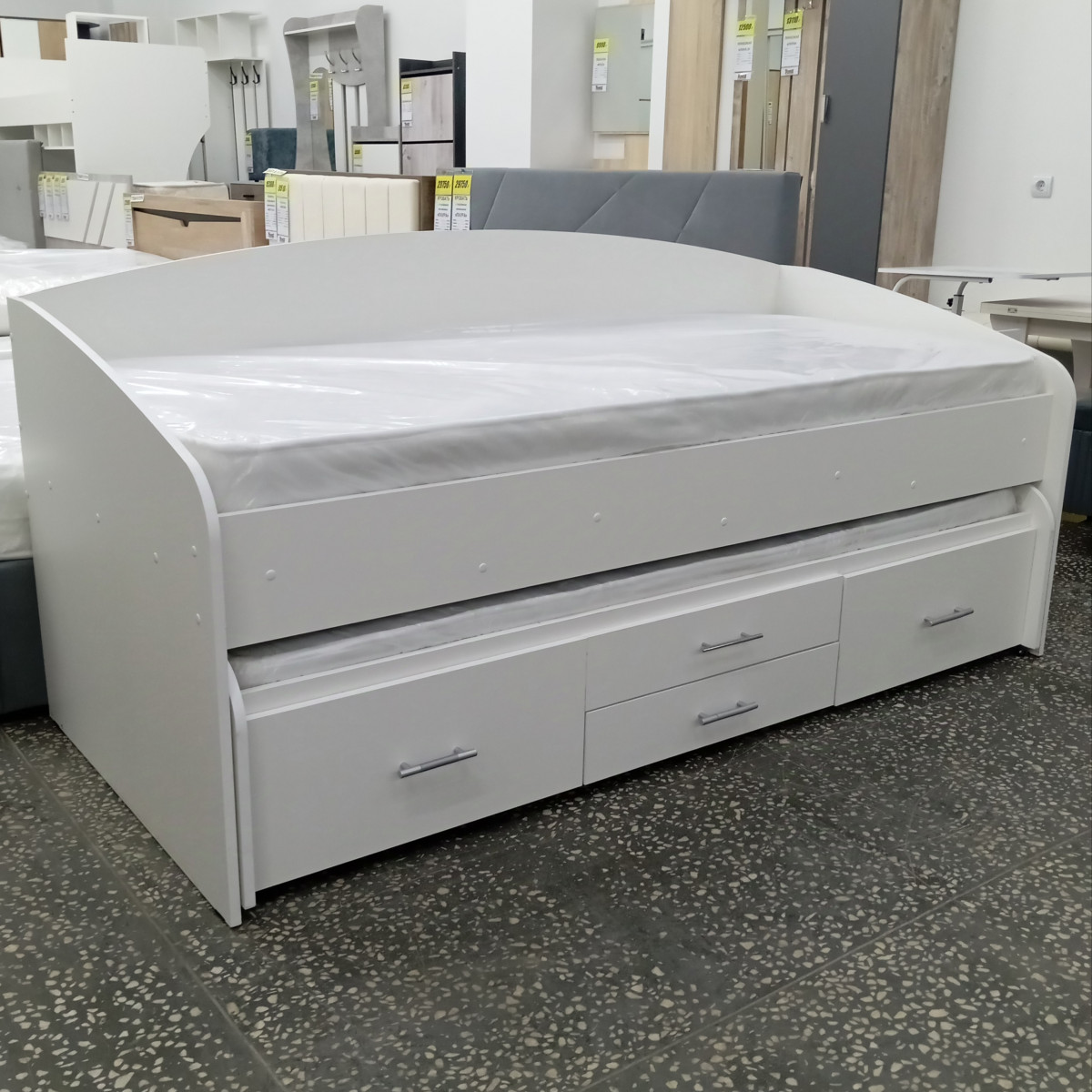 Два выдвижных ящика удобно использовать для хранения постельных принадлежностей.