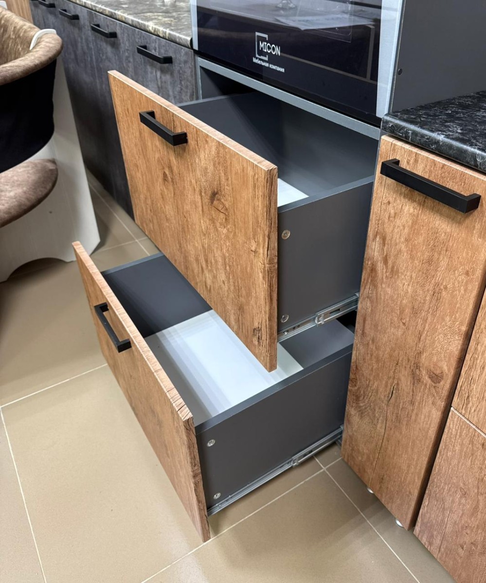 * Фурнитура: петли без доводчиков; шариковые направляющие скрытого монтажа в некоторых модулях.